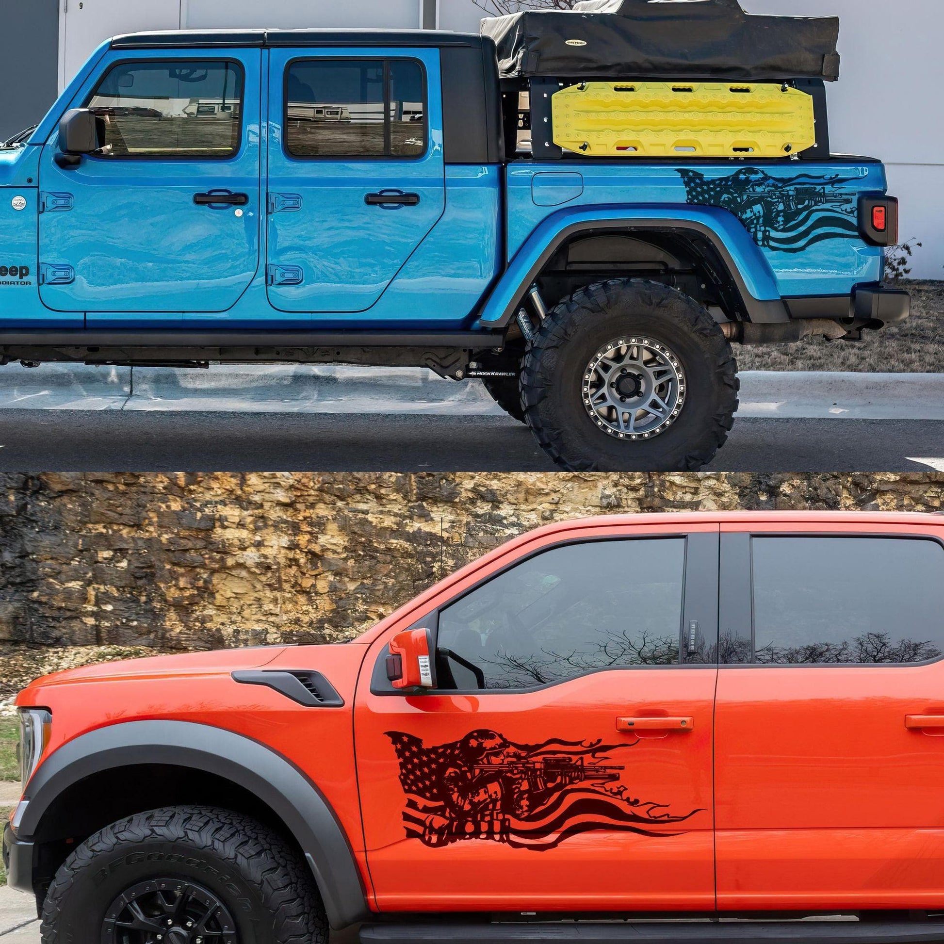 Military Soldier Flag Truck / Car Decal Sticker. Veteran Flag Window Sticker. #6967