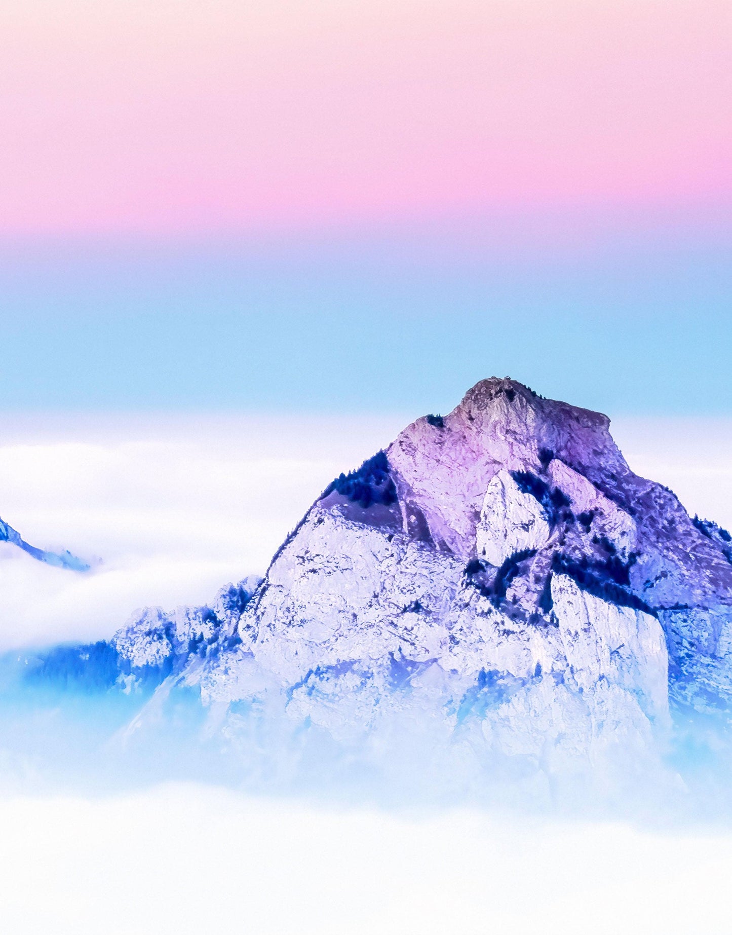- Add this peaceful serene mountain view on top of clouds to your wall.