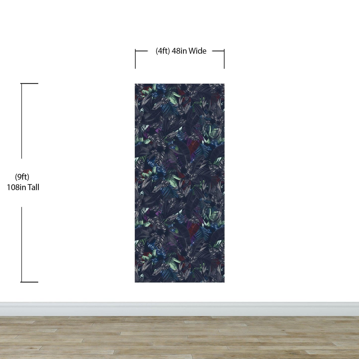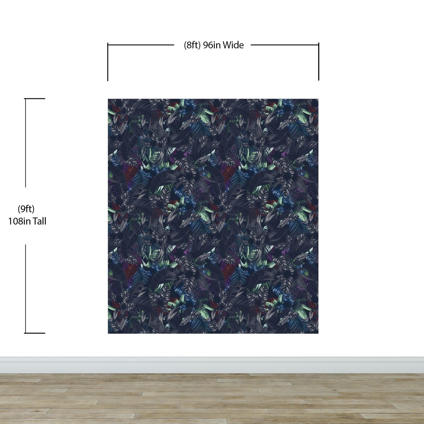 Check out our pastel color (purple, green, blue, burgundy, grey) tropical leaves theme in dark background wallpaper mural, the perfect way to bring a touch of paradise to your home or office! This mural features lush, vibrant leaves in shades of green, set against a moody, dark background that creates a dramatic and striking effect.