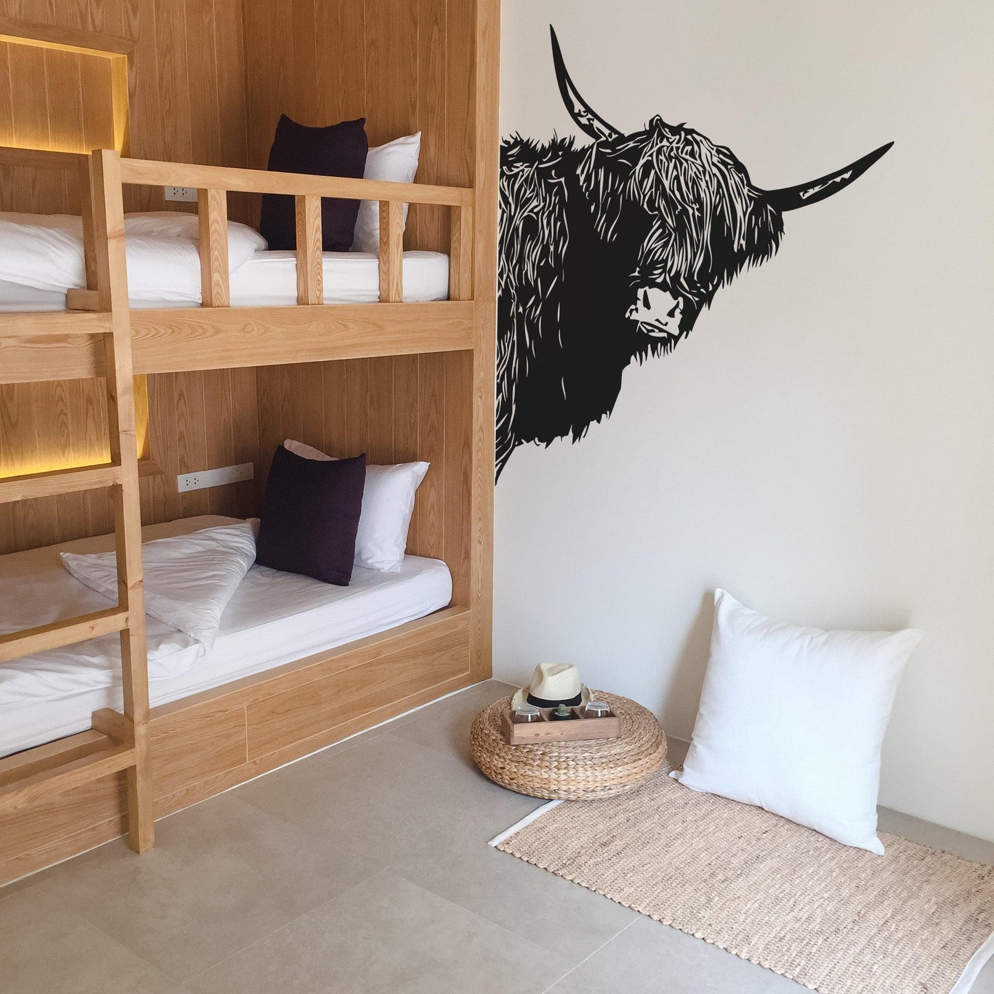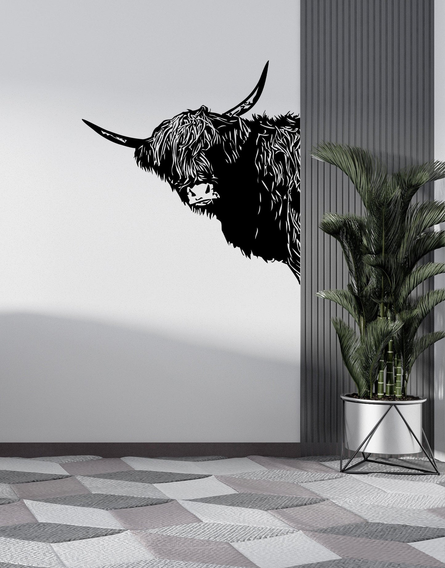 - Peeking Scottish cow makes a great kitchen home decor. Funny cow head will make everyone smile. Bring the farmhouse indoors.