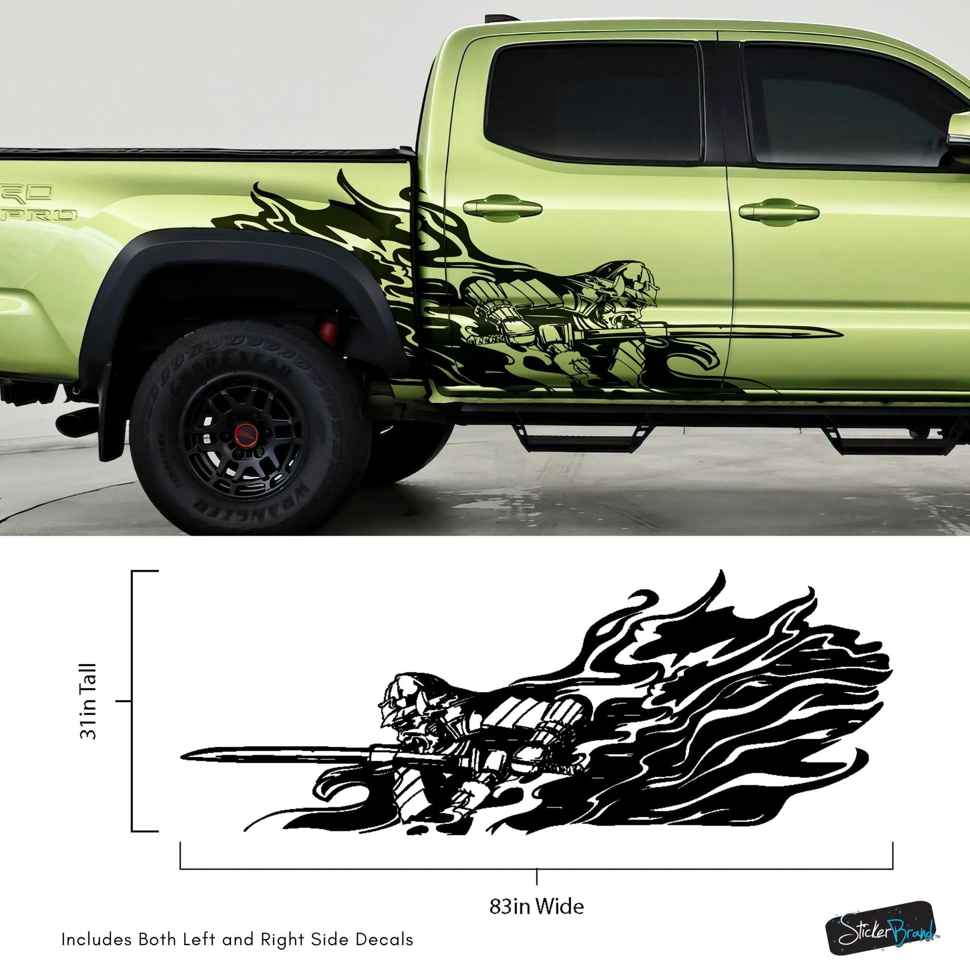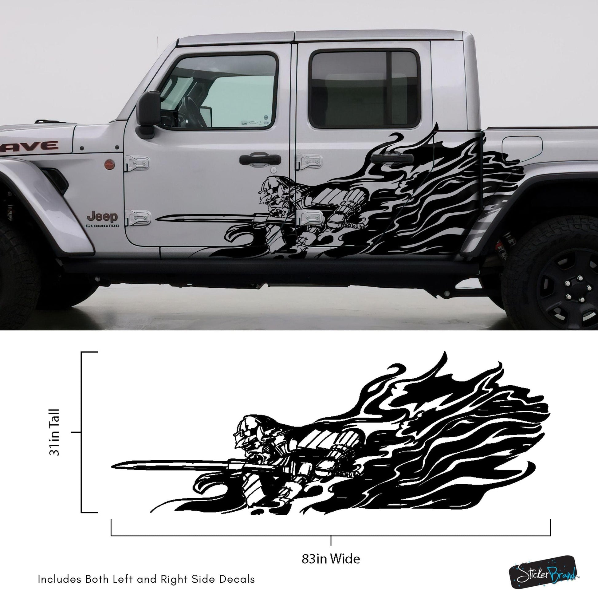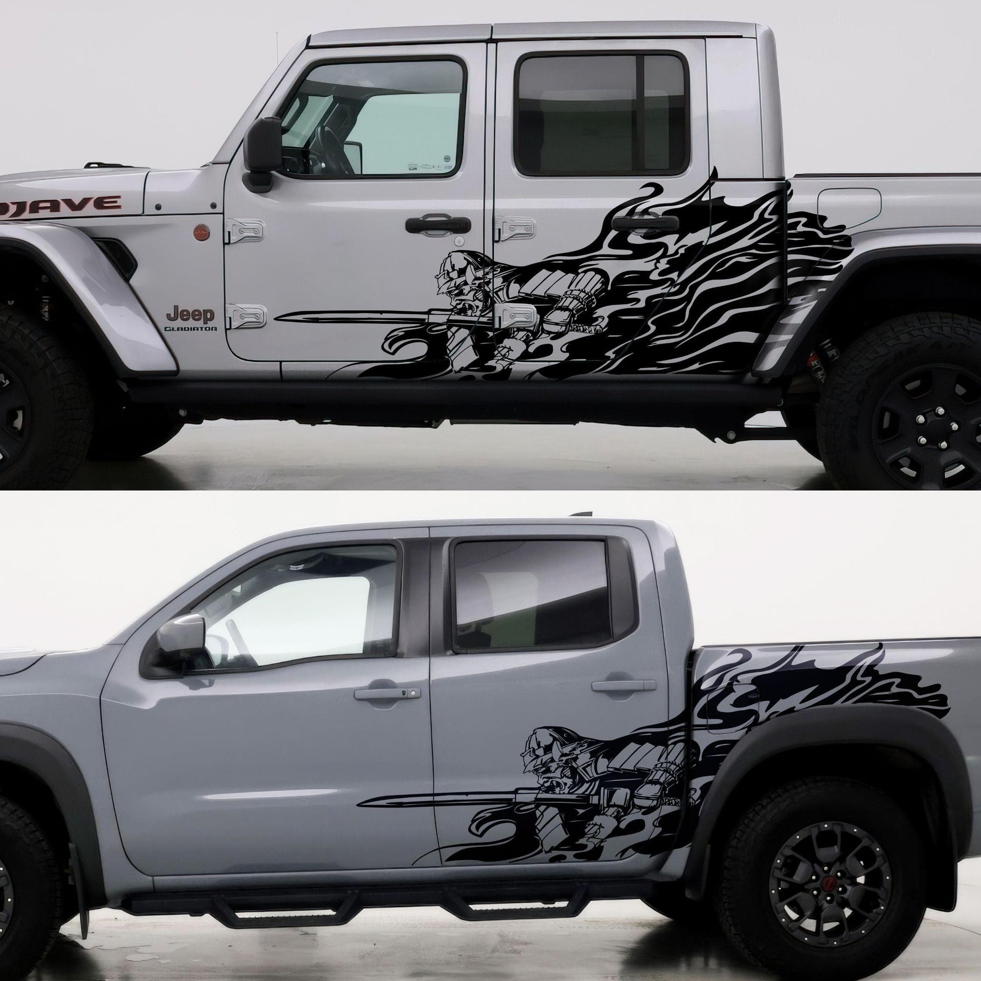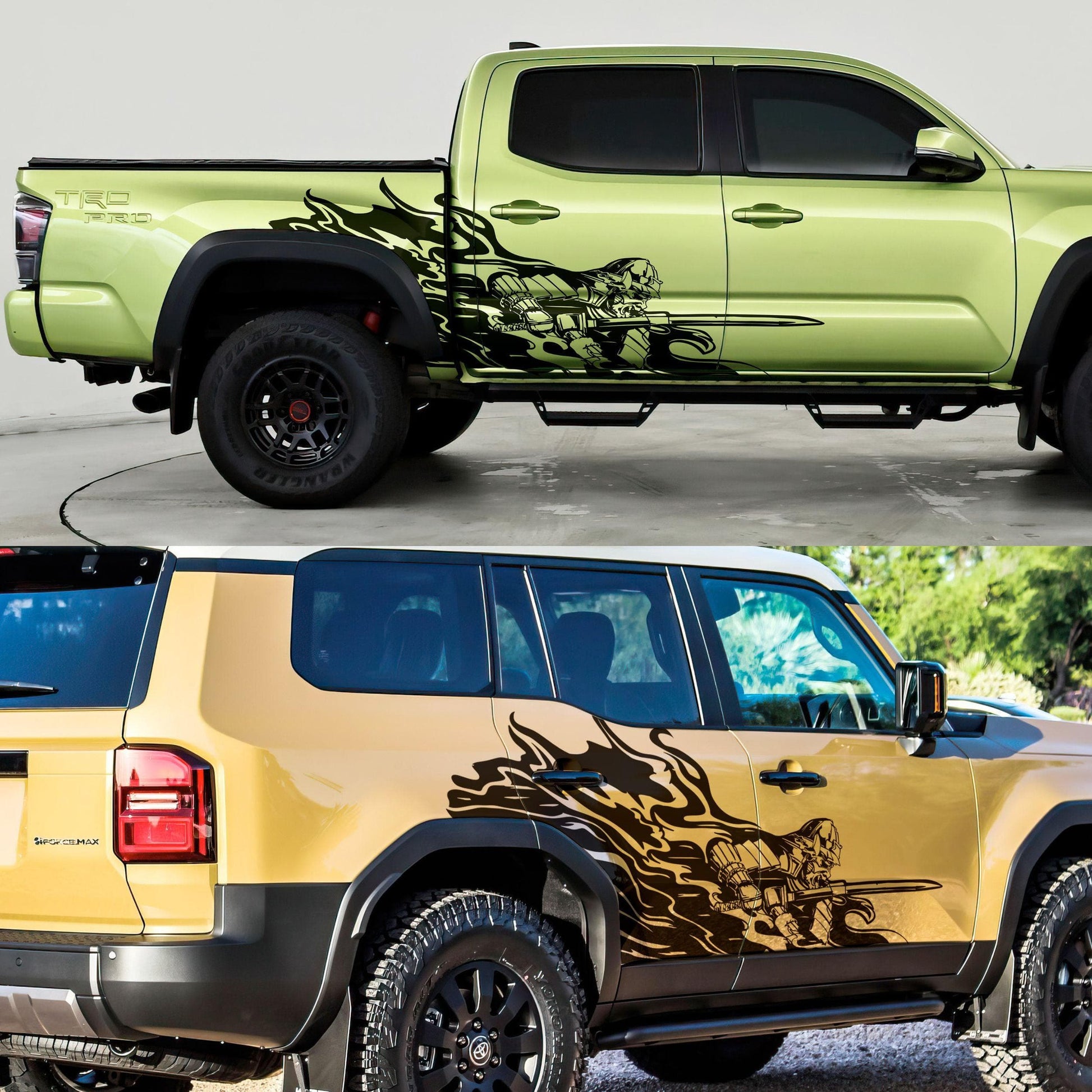 Most of our car graphic decals are designed as universal fits, which means some trimming will be required during installation. You may need to trim around doors, fenders, and other features of your vehicle to achieve the best fit.