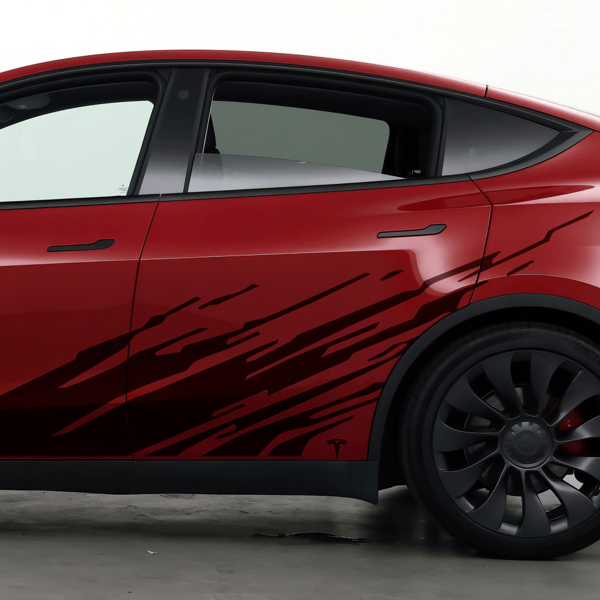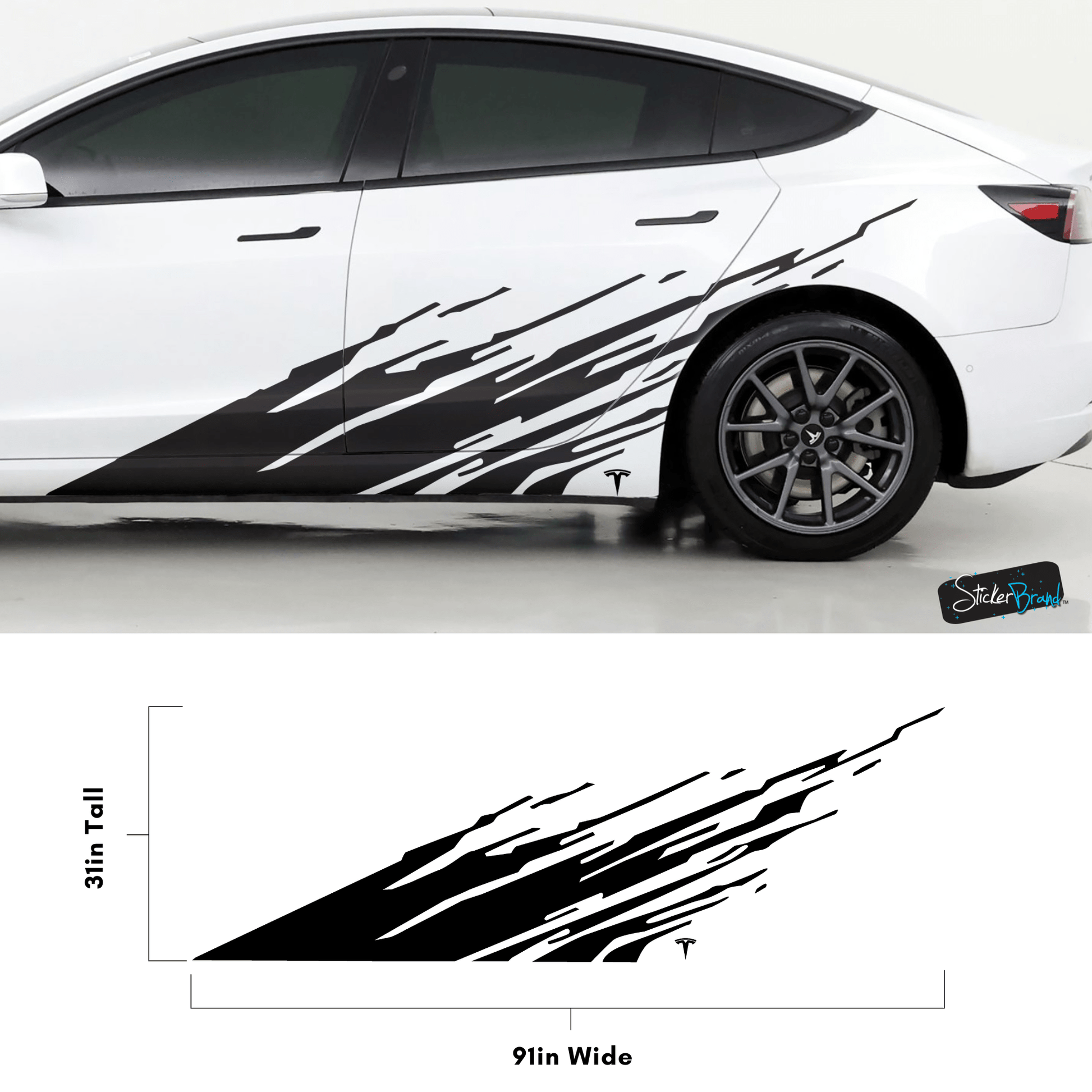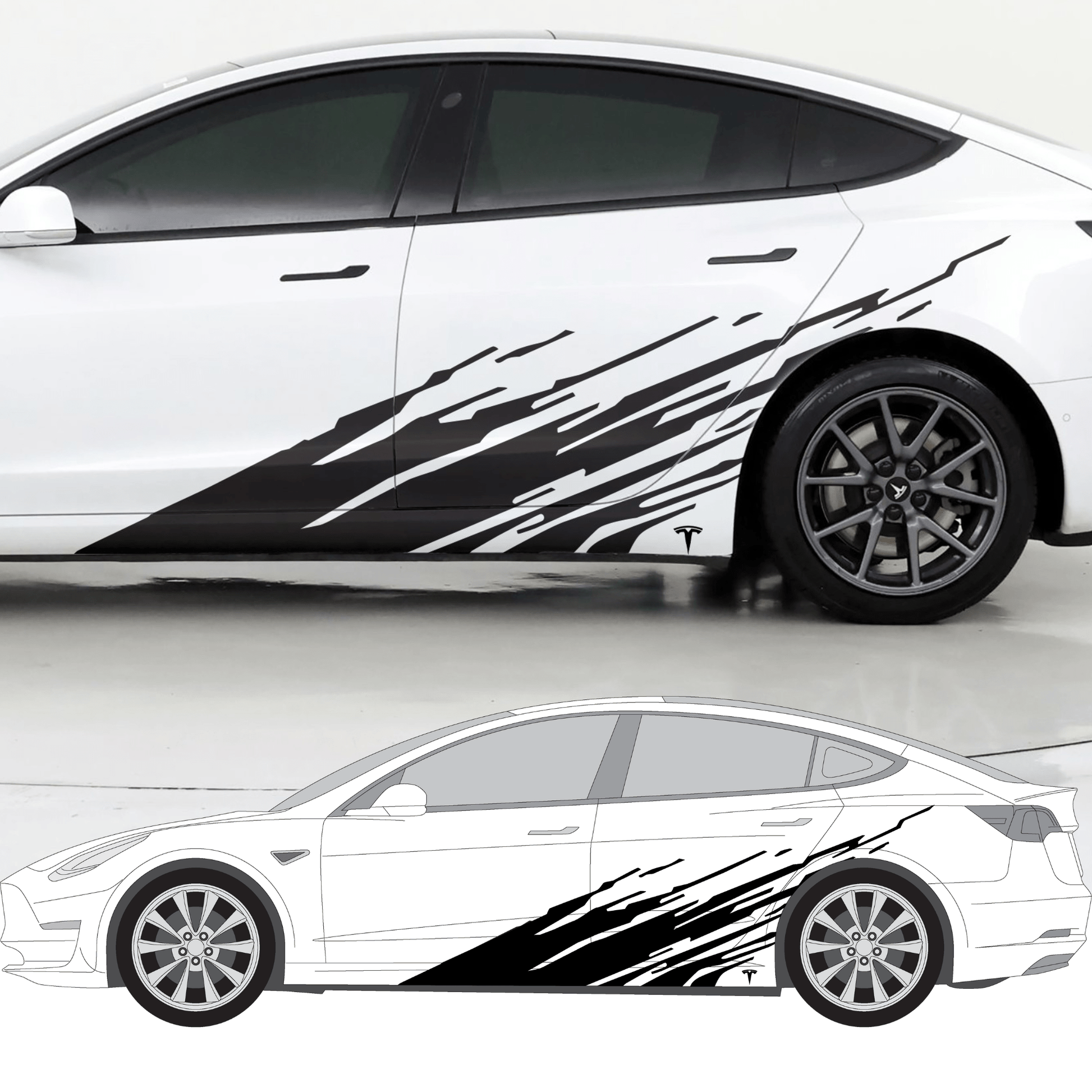Most of our car graphic decals are designed as universal fits, which means some trimming will be required during installation. You may need to trim around doors, fenders, and other features of your vehicle to achieve the best fit.
