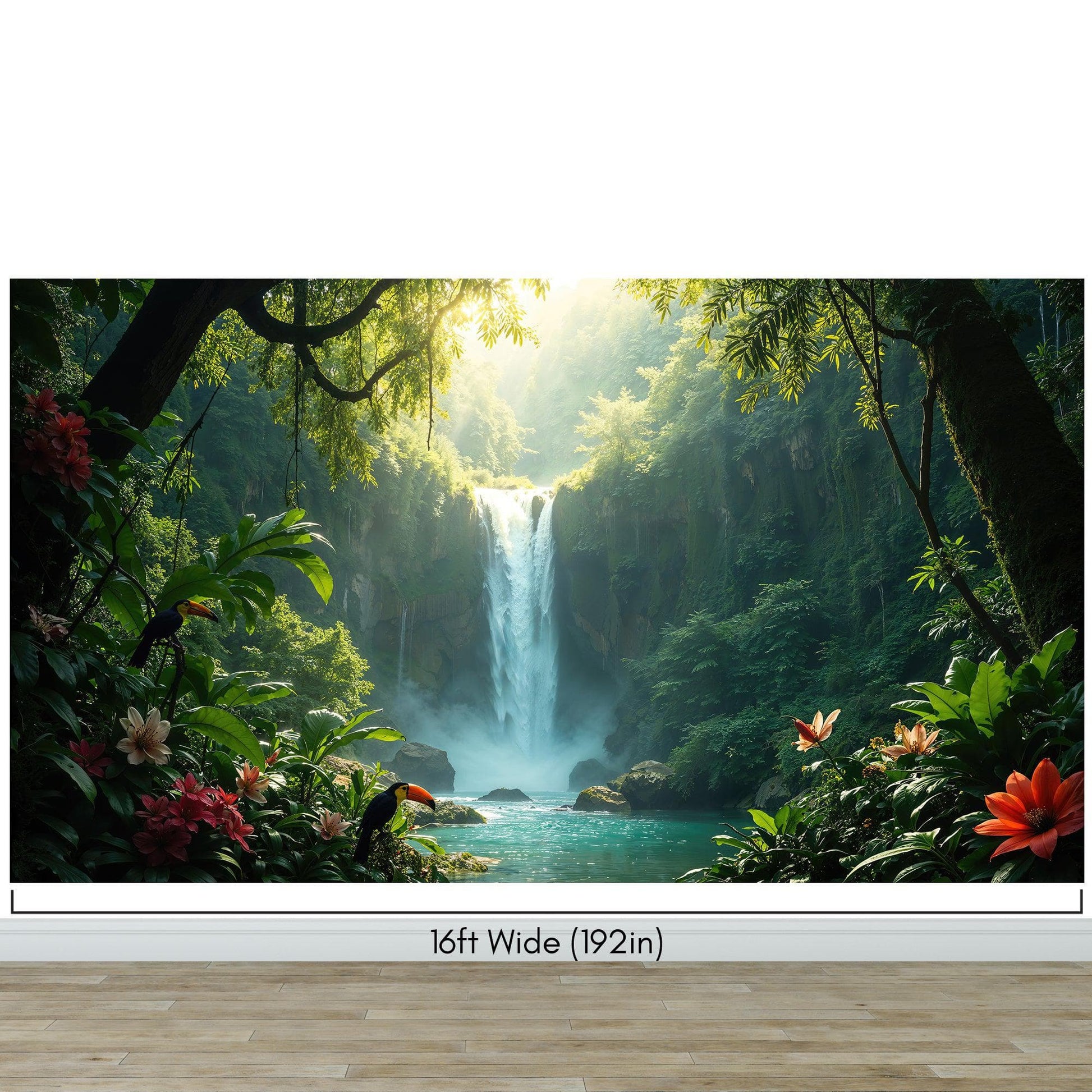 Tropical Rainforest Waterfall Wallpaper Wall Mural. #6987