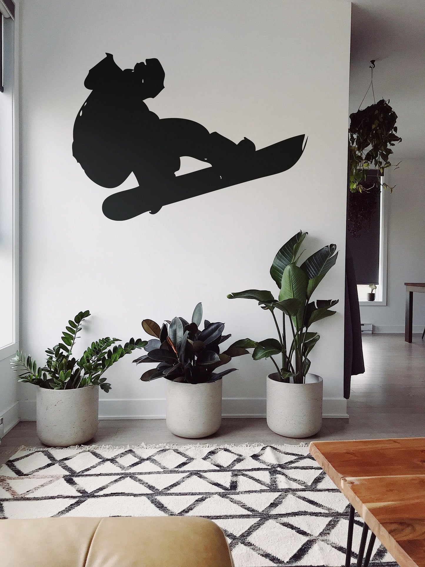 - Simply peel and stick this snowboard wall art. No glue or chemicals needed, all decals come with instructions.