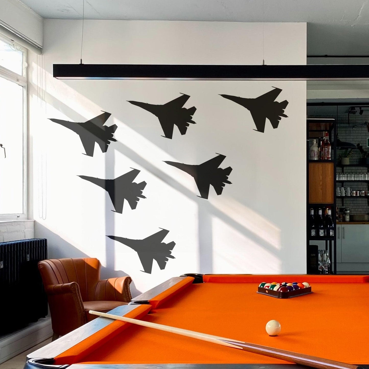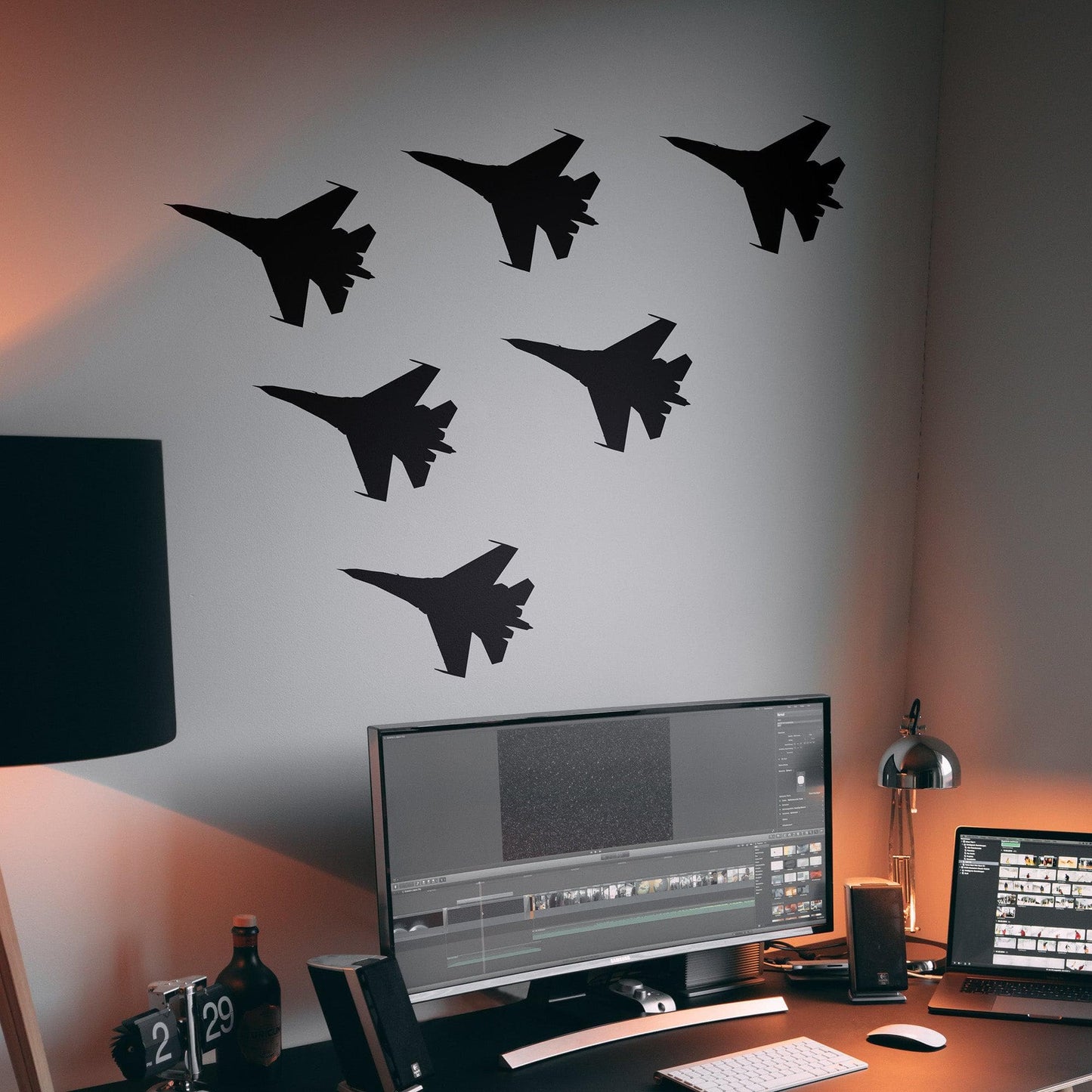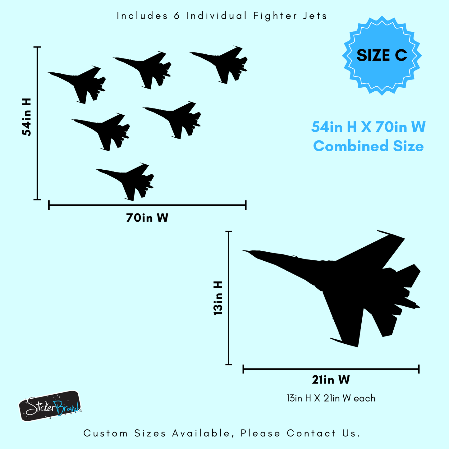 Each Jet Size: 13in H X 21in W - Fighter Jets can be positioned in any formation you wish.
