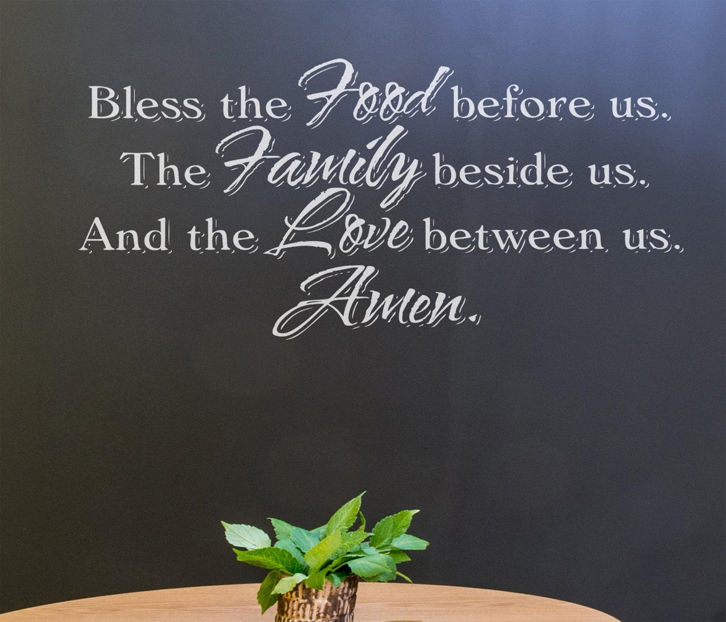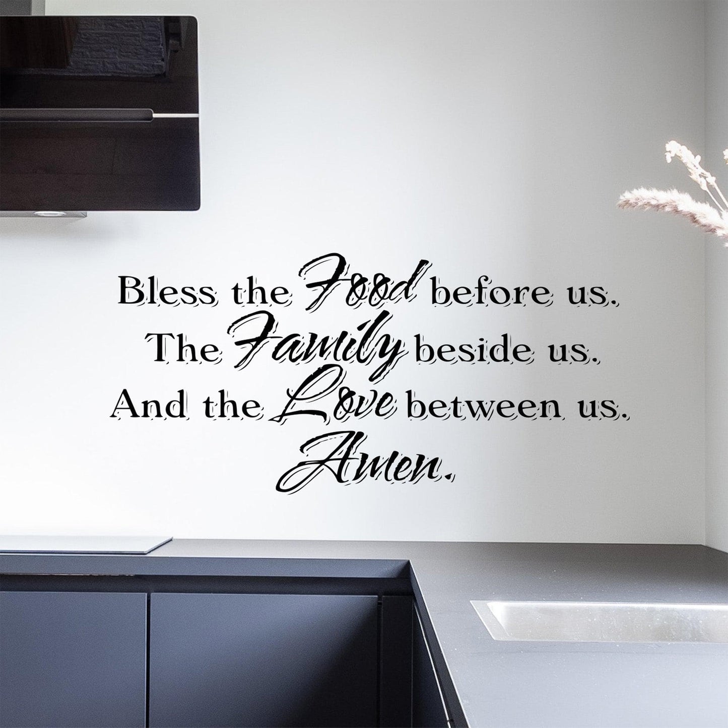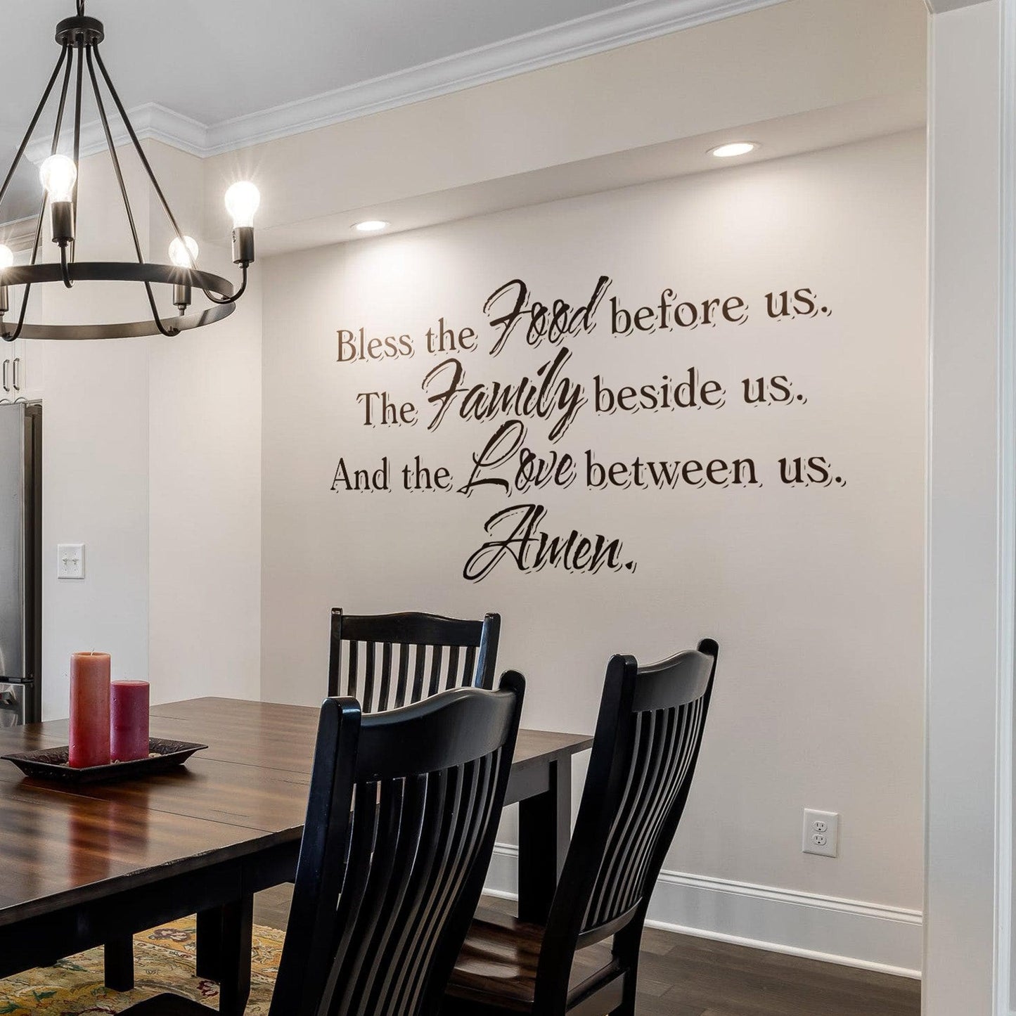 Dining Room Wall Quote Decal Sticker: "Bless the Food Before Us, The Family Beside Us, And the Love Between Us. Amen".