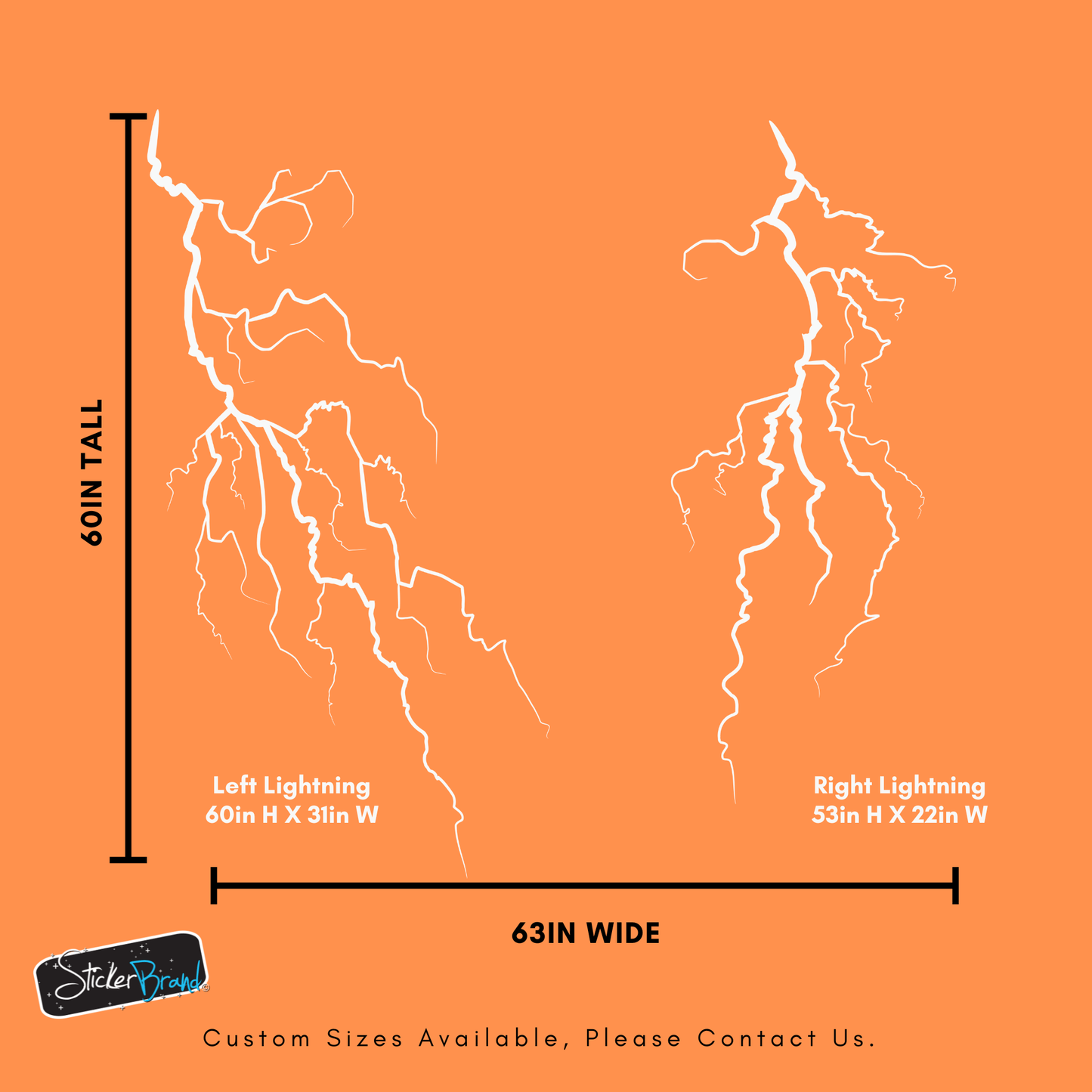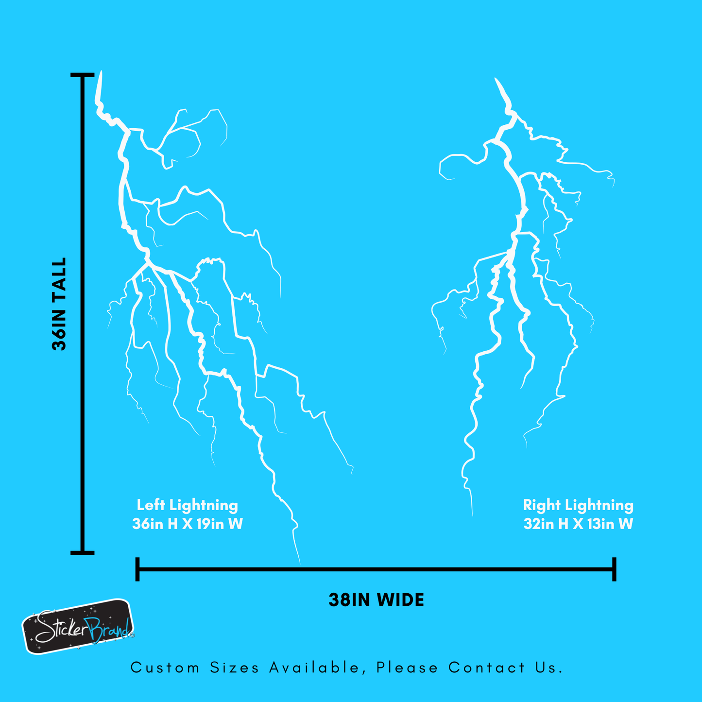 - Sizes of lightning bolt stickers are combined as shown, however you can position them separately.