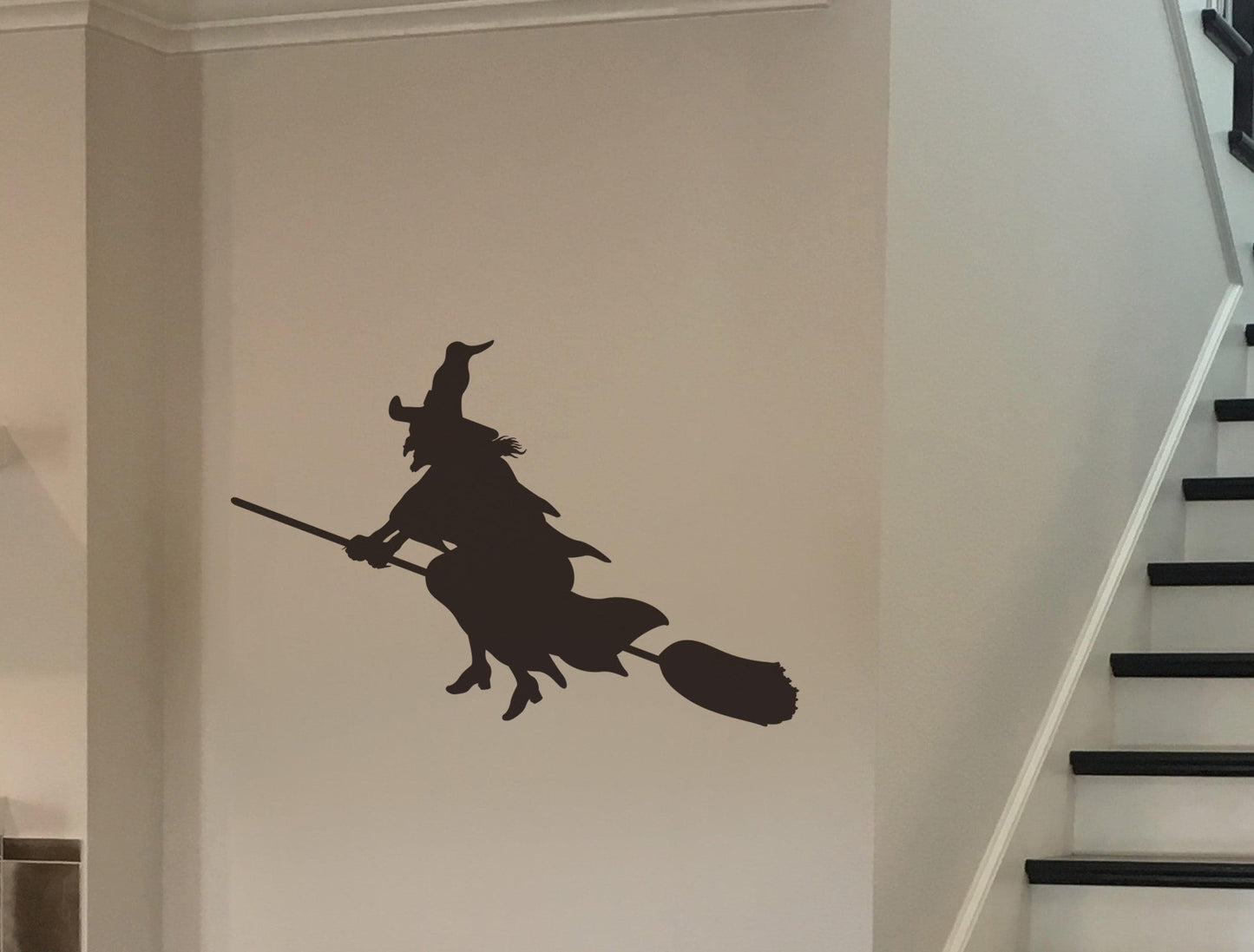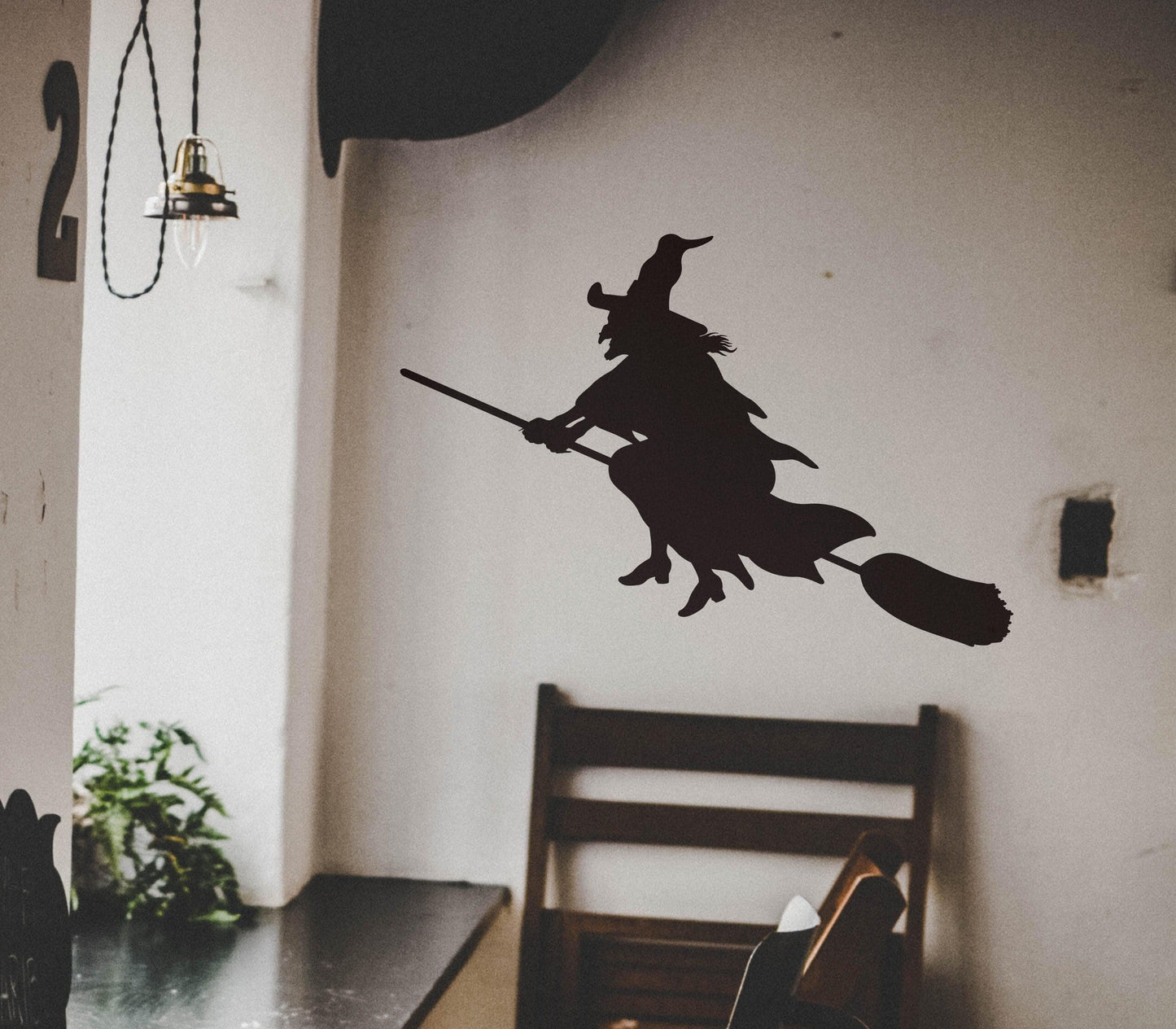 - Halloween Thrills: Set the mood for Halloween festivities with this captivating witch and broom decal as the centerpiece of your decor.