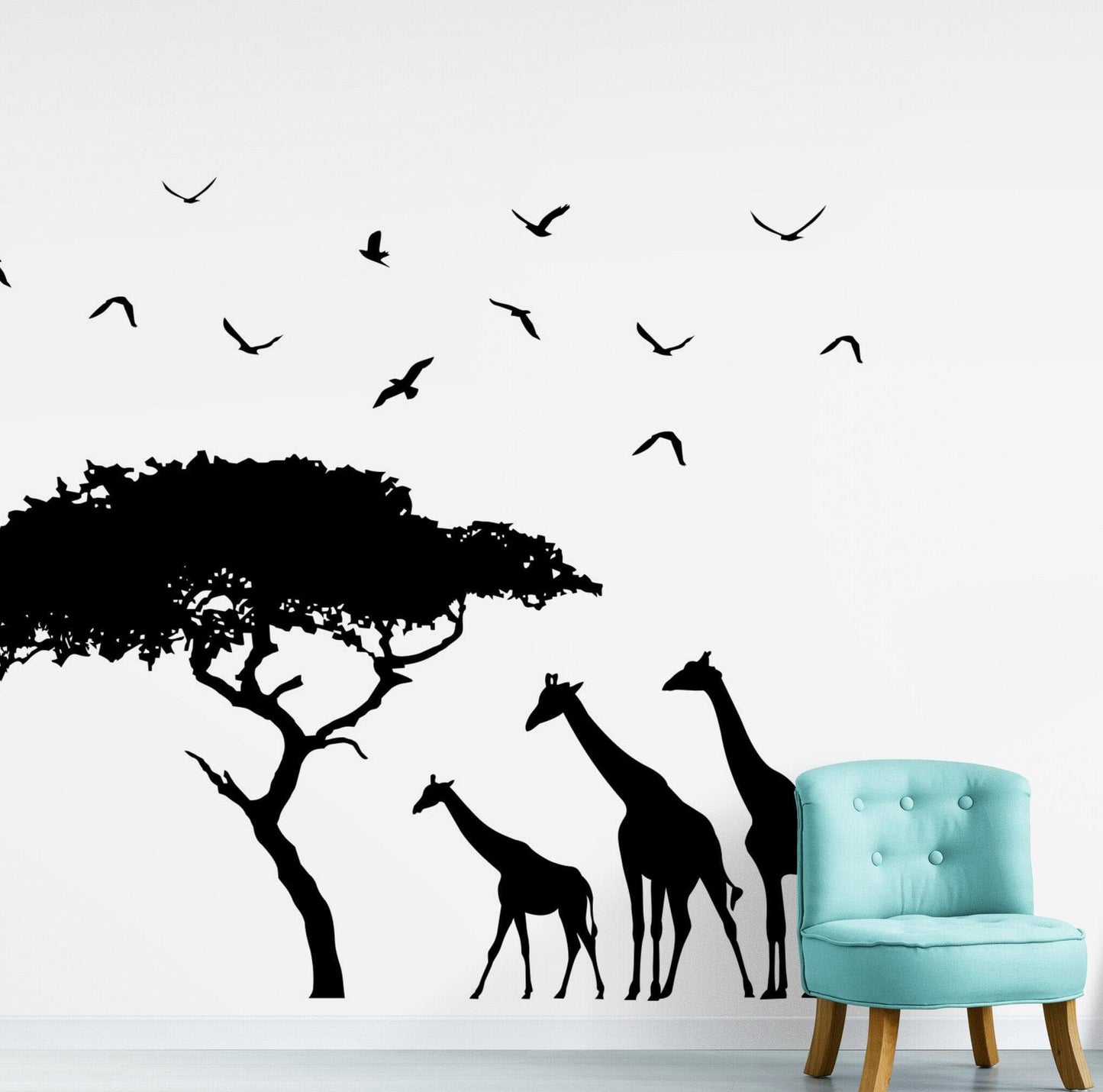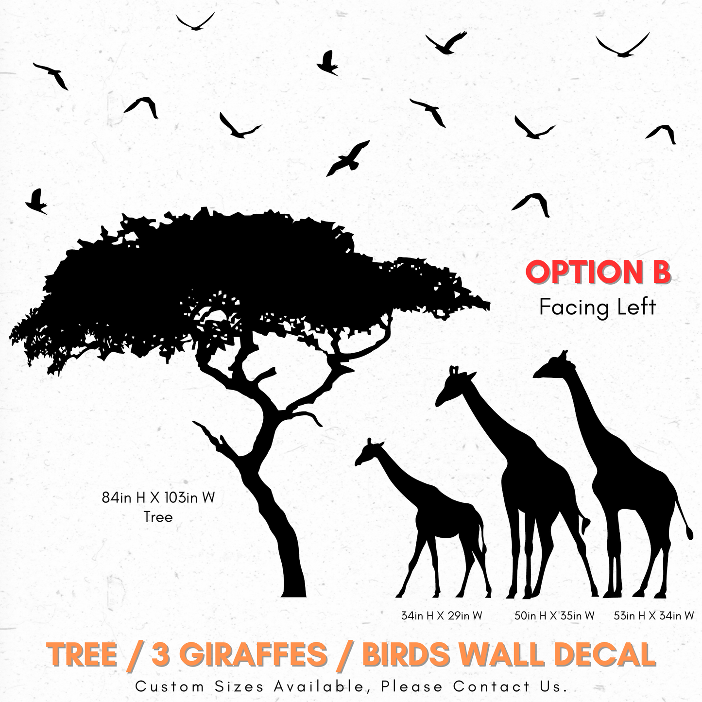- Size: Option B (Includes 3 Giraffes, 1 Tree, and Birds)