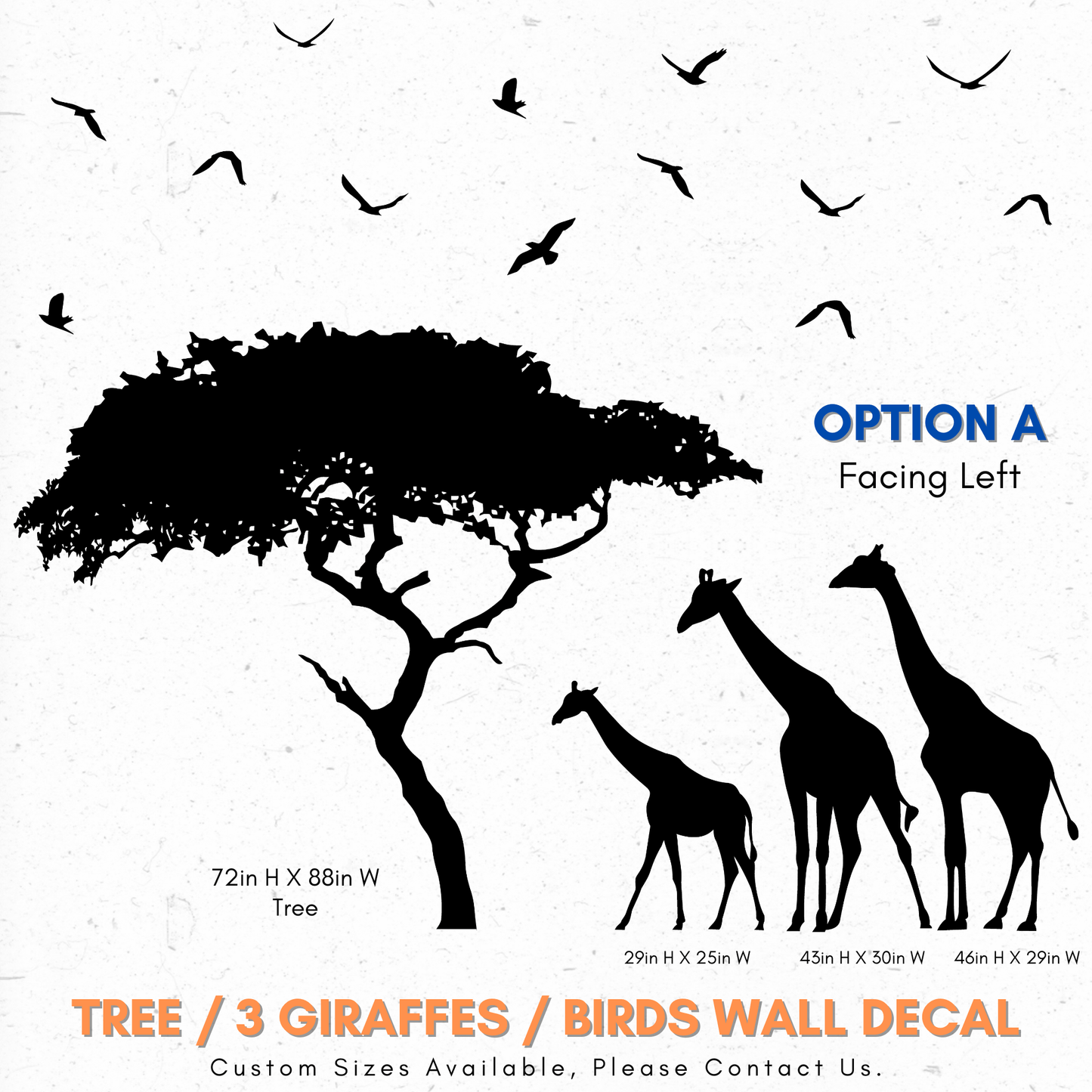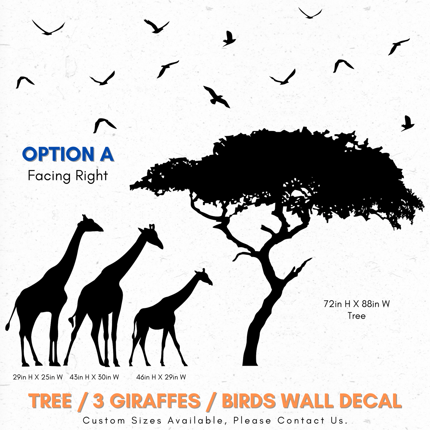 - Size: Option A (Includes 3 Giraffes, 1 Tree, and Birds)