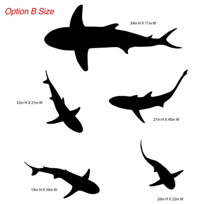 Option B: Includes 5 Sharks, sizes varies. Max Size 71in long