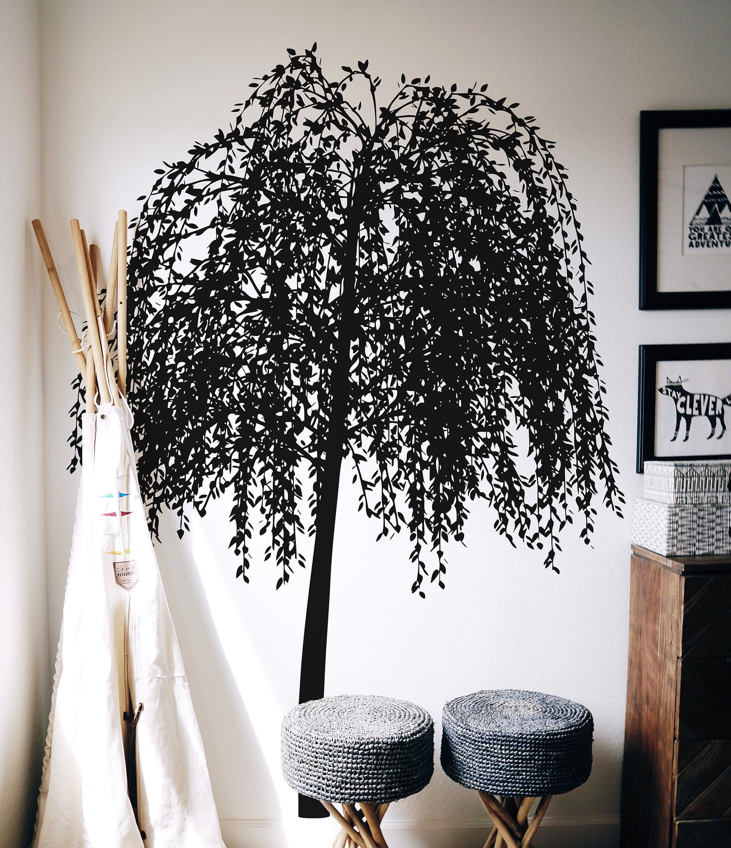 Transform your living space into a peaceful oasis with our weeping willow tree decal sticker. Whether adorning your living room, bedroom, nursery, or office, this botanical wall decor brings the beauty of nature indoors. Crafted from high-quality vinyl, our removable willow tree sticker is easy to apply and reposition, allowing you to customize your walls with ease. Let the graceful branches of the weeping willow tree sweep across your walls and create a sense of tranquility in your home. Bring the outdoors in and elevate your decor with our weeping willow tree decal.